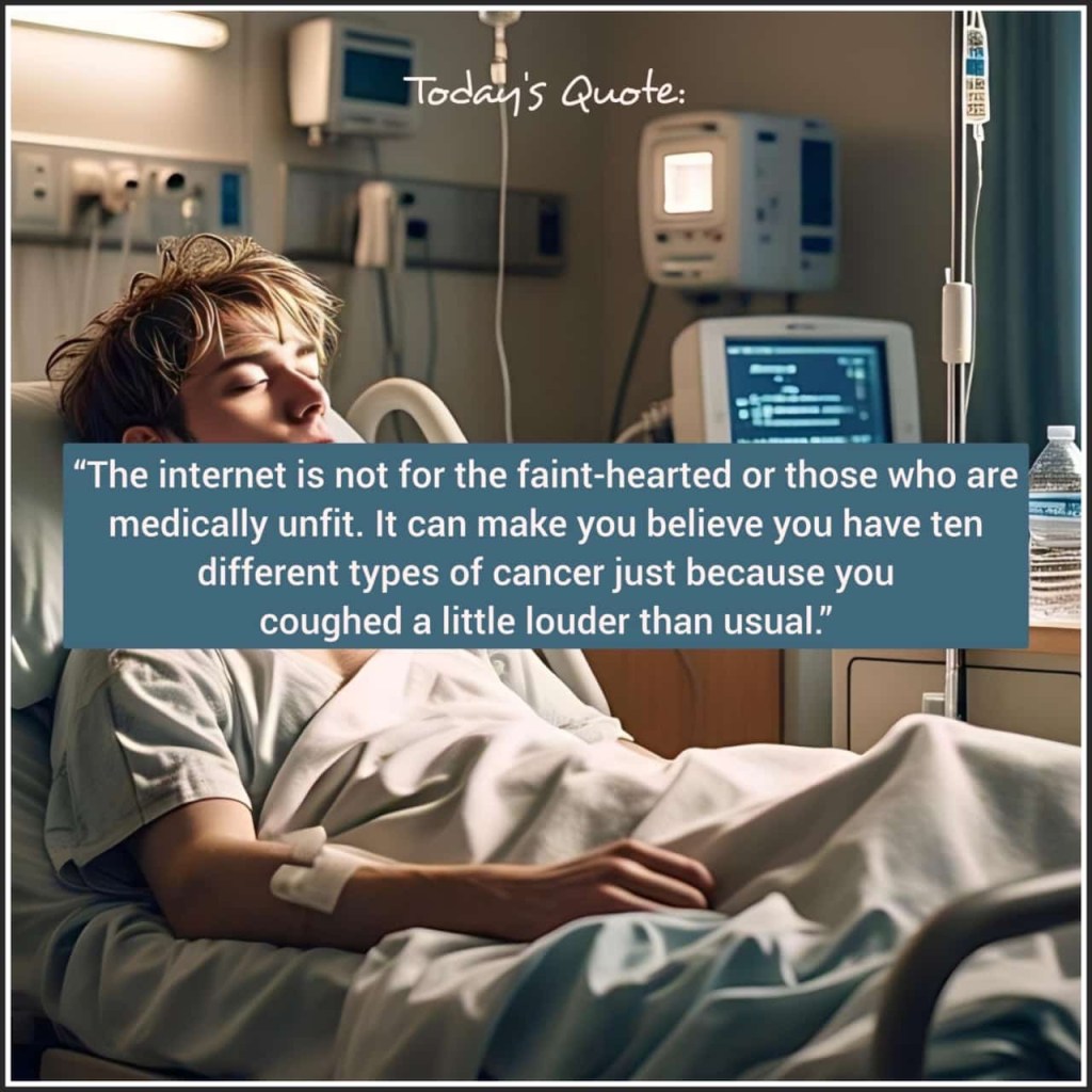 Hard reality of life. We check Internet for simple coughing also and we get thousand answers to make us fearful and scared. Just come out of this internet world for health. Go and consult a doctor.