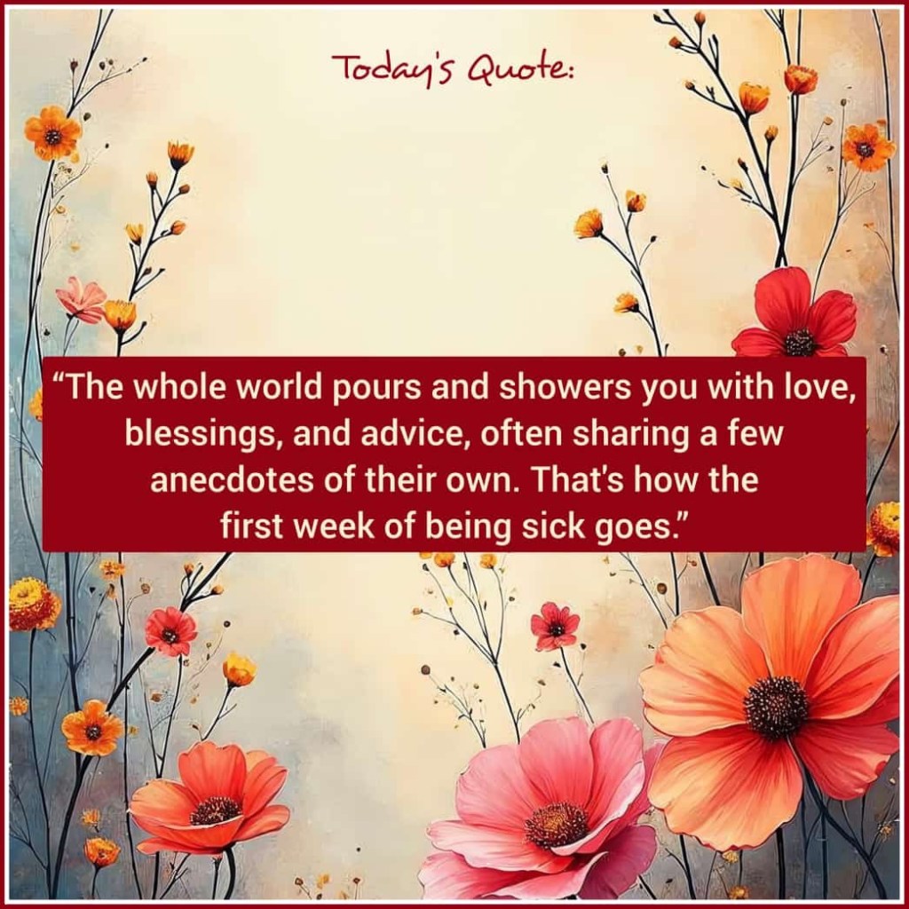“बीमार होने का पहला हफ्ता ऐसा होता है जब पूरी दुनिया आप पर प्यार, आशीर्वाद और सलाह की बारिश करती है.”