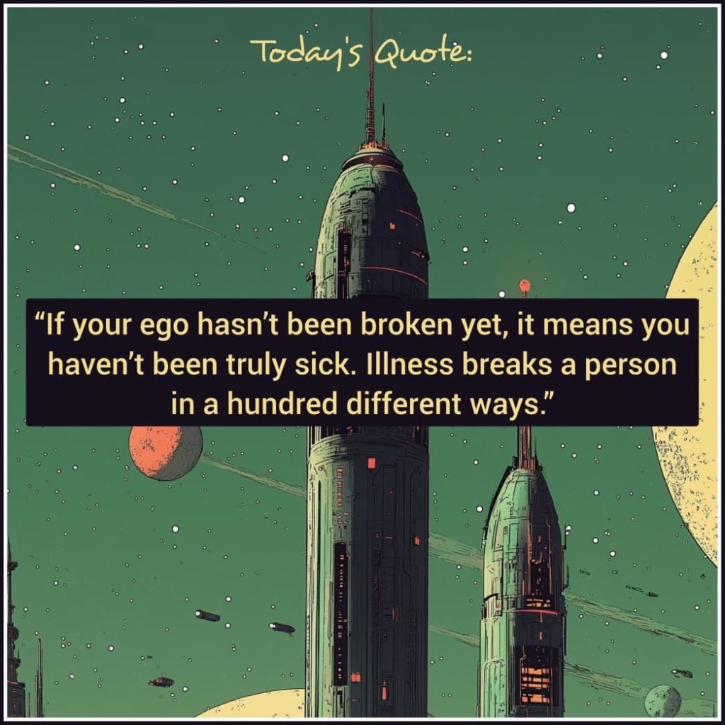 “यदि आपका अहंकार अभी भी जिंदा है, तो आप अभी तक बीमारी के प्रलयंकारी रूप के अनुभव से वंचित हैं। बीमारी इंसान को सैकड़ों अलग-अलग तरीकों से तोड़ देती है।”