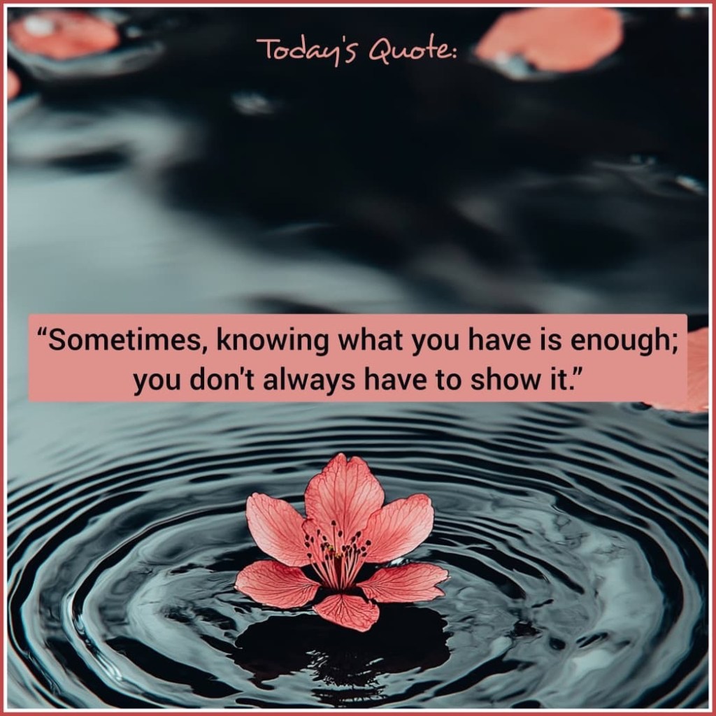 “अगर आप अपने वैभव से संतुष्ट है तो उतना काफी है, लोगो की स्वीकृति की आवश्यकता नहीं हैं।”