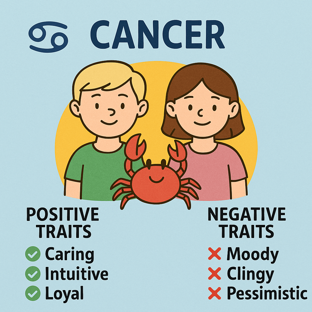 Cancer, the soft-hearted crab of the zodiac, is known for emotional depth, nurturing nature, and intuitive strength. Ruled by the Moon, this water sign feels everything deeply and carries a strong connection to home, family, and feelings.