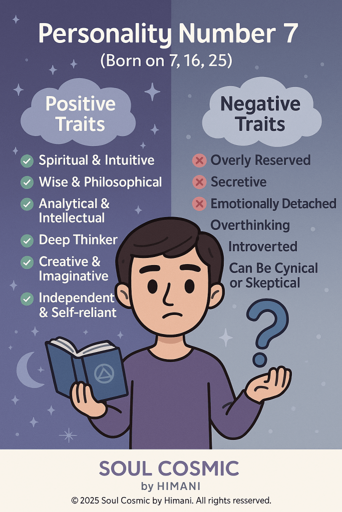 People born on the 7th, 16th, or 25th of any month carry the mystical, intuitive, and intellectual energy of Personality Number 7.