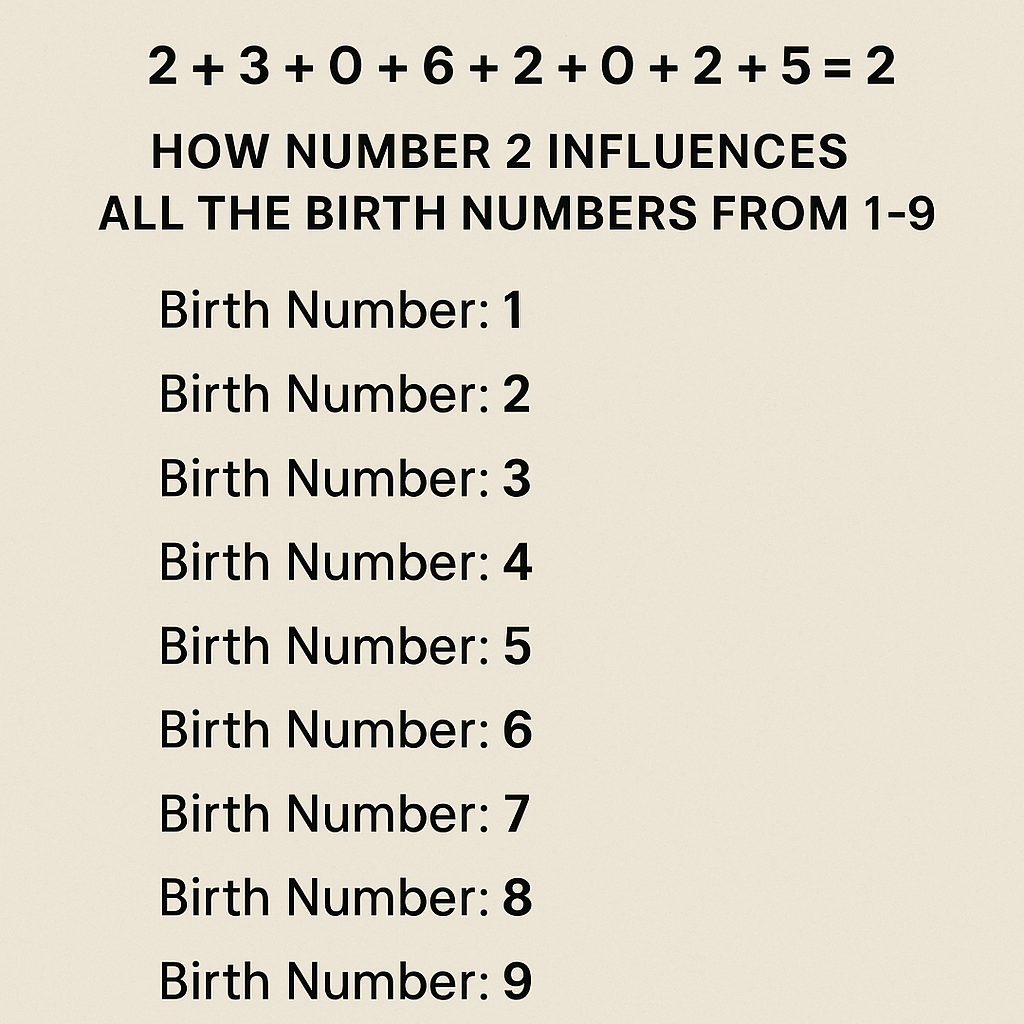 Let’s see how this Moon-driven energy (2) will influence each birth number (Moolank) from 1 to 9 on this day: