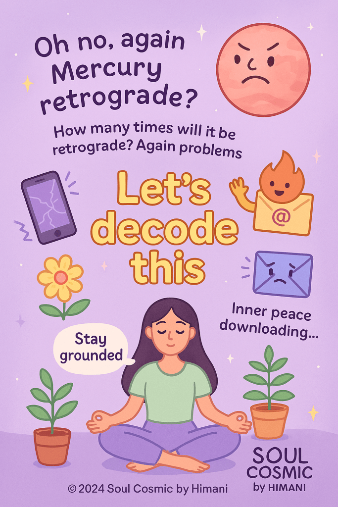 Mercury is a fast-moving planet and goes retrograde 3 to 4 times every year. It’s like that friend who shows up at every party, breaks your Wi-Fi, and spills chai on your notes — then says “It’s for your growth!”