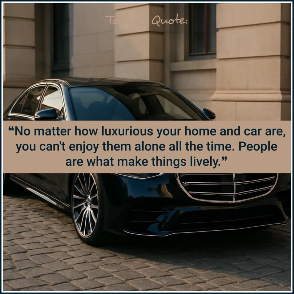 “चाहे आपका घर और गाड़ी कितनी भी आलीशान क्यों न हो, आप उन्हें हमेशा अकेले रहकर उपभोग नहीं कर सकते। चीज़ों में रौनक तो लोगों से ही आती है।”