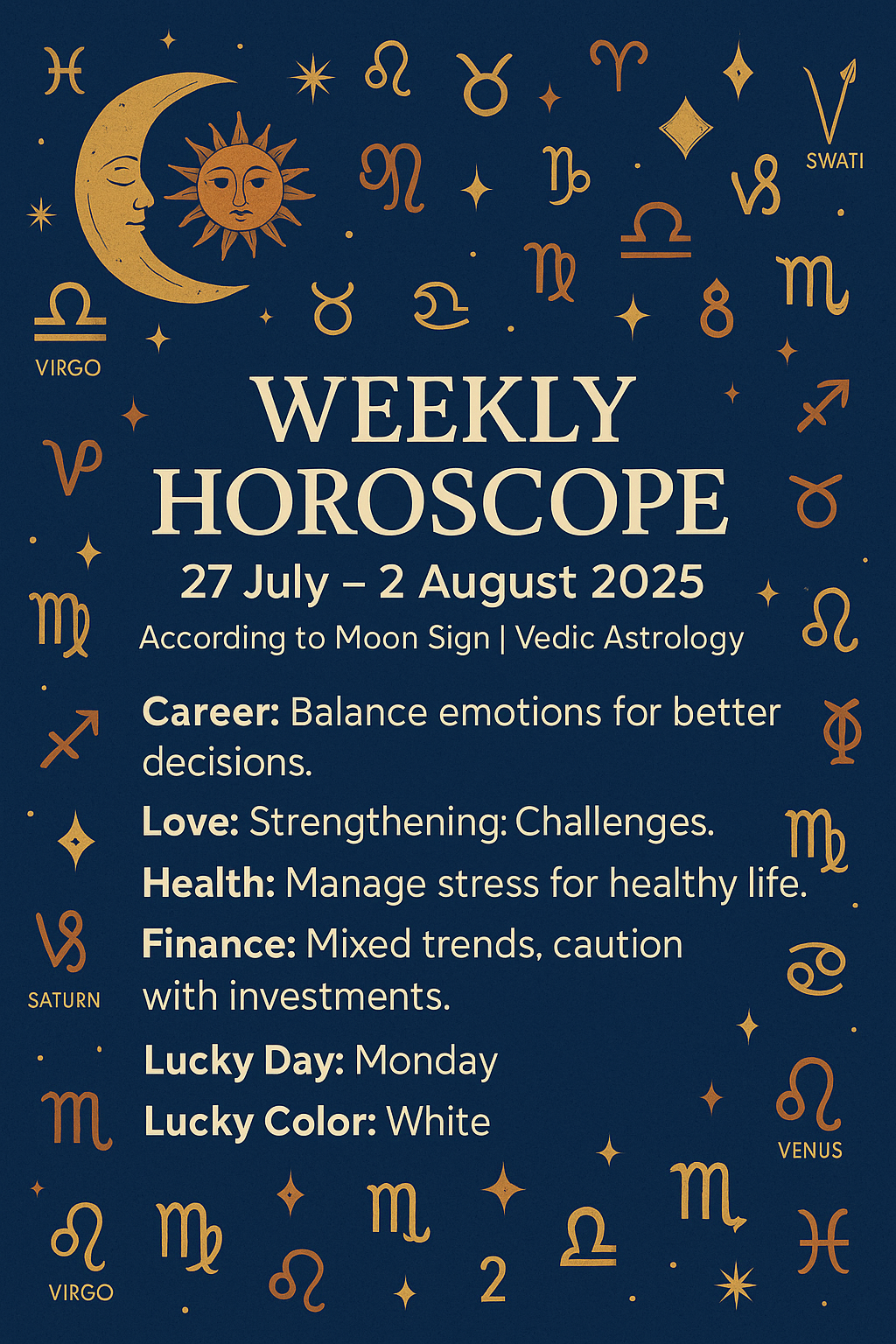 This week brings a powerful celestial play! With Sun in Cancer (Pushya), Mercury combust & retrograde, and Mars shifting to Virgo, emotions, precision, and past patterns will all surface. The Moon’s movement from Leo to Libra activates themes around self-expression, healing, service, and relationships. Venus enters Ardra by weekend—expect intense romantic cravings, mood swings, and mental chatter in love matters. Let’s explore how these transits influence your life across career, love, health, and finances.