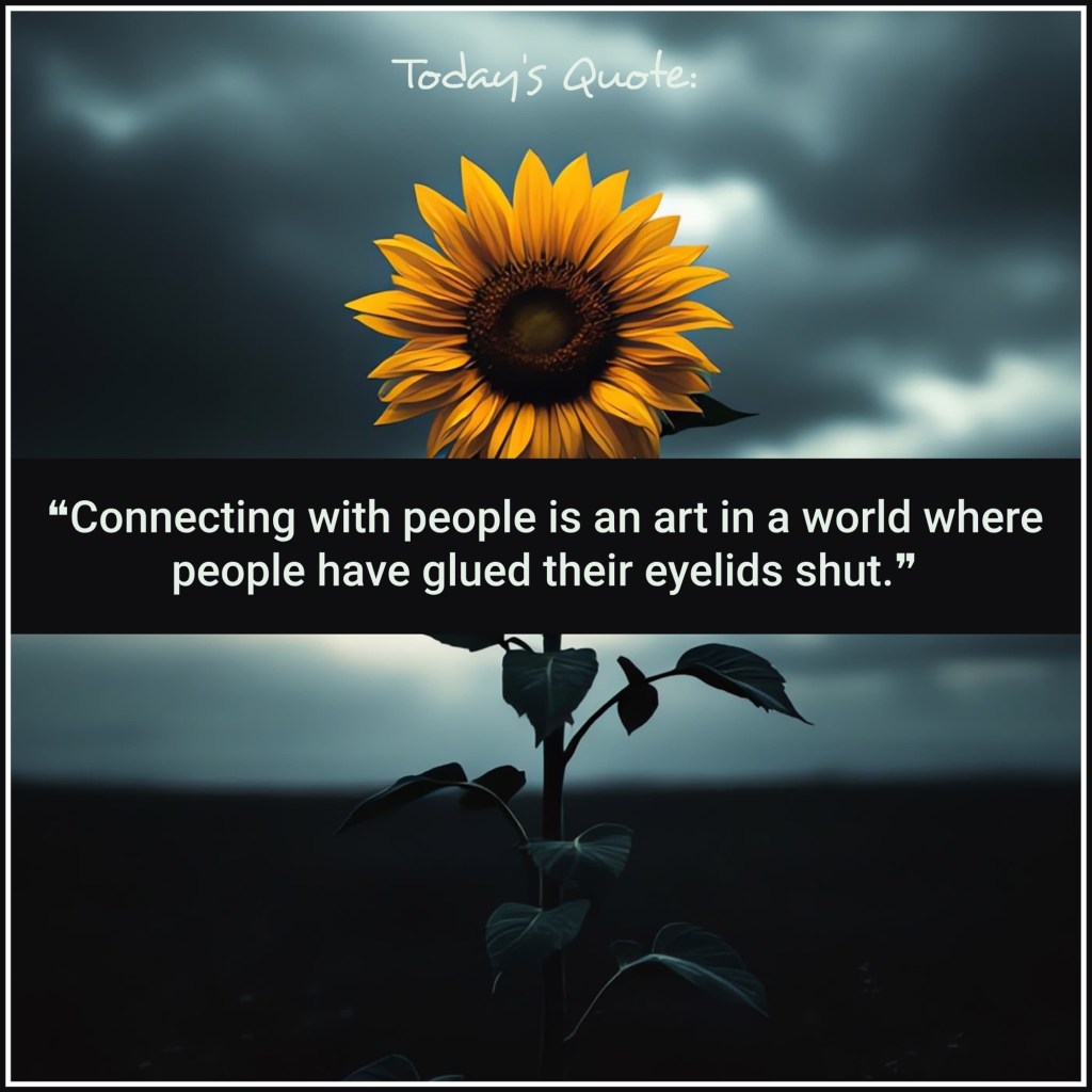 “एक ऐसी दुनिया में जहाँ लोगों ने अपनी पलकों को ही बंद कर रखा है, वहाँ दिलों से जुड़ना एक कला है।”