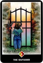 That’s The Outsider energy in a nutshell. In Osho Zen Tarot, the 5 of Rainbows shows a little child holding onto a locked gate, watching the colorful world inside — thinking they can’t go in.