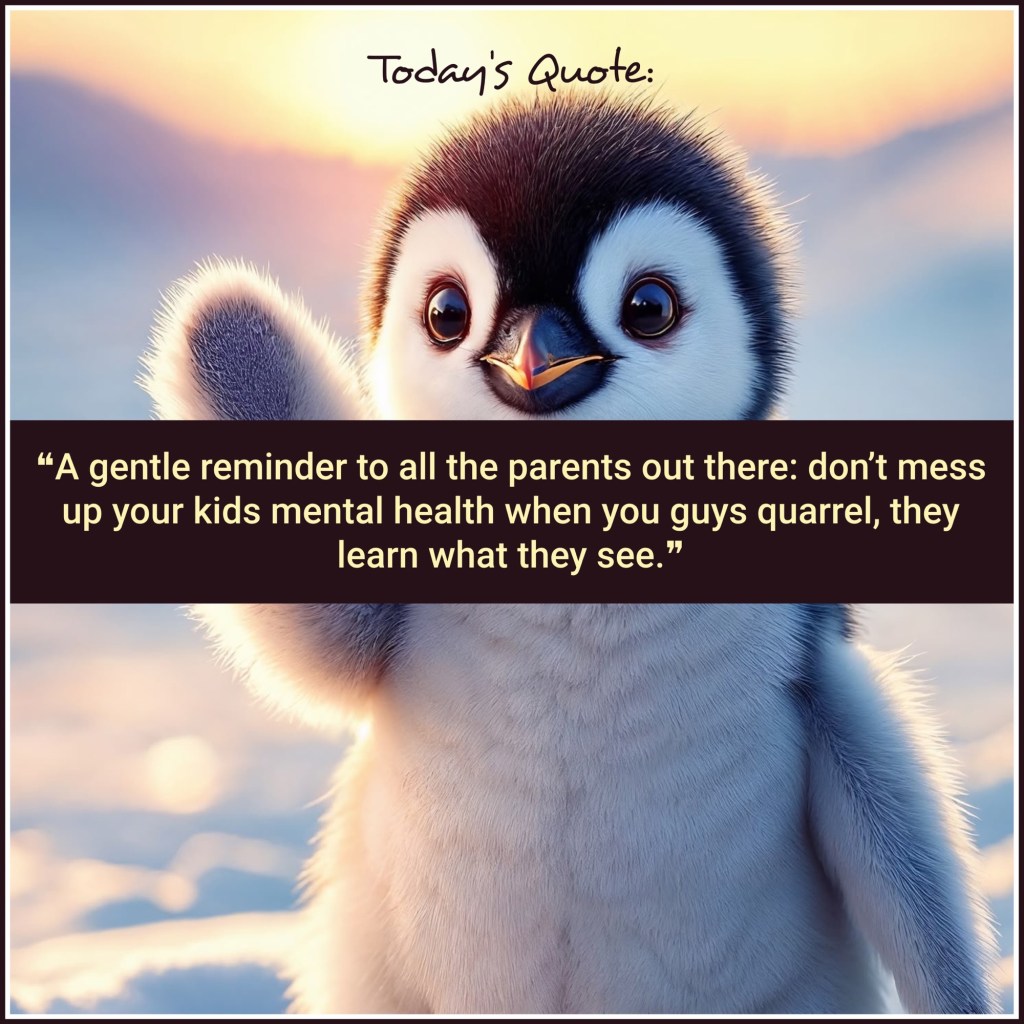 “सभी माता-पिता से विनम्र निवेदन है: जब आप आपस में झगड़ते हैं, तो अपने बच्चों की मानसिक सेहत का भी ध्यान रखें, क्योंकि बच्चे वही सीखते हैं जो वे देखते हैं।”