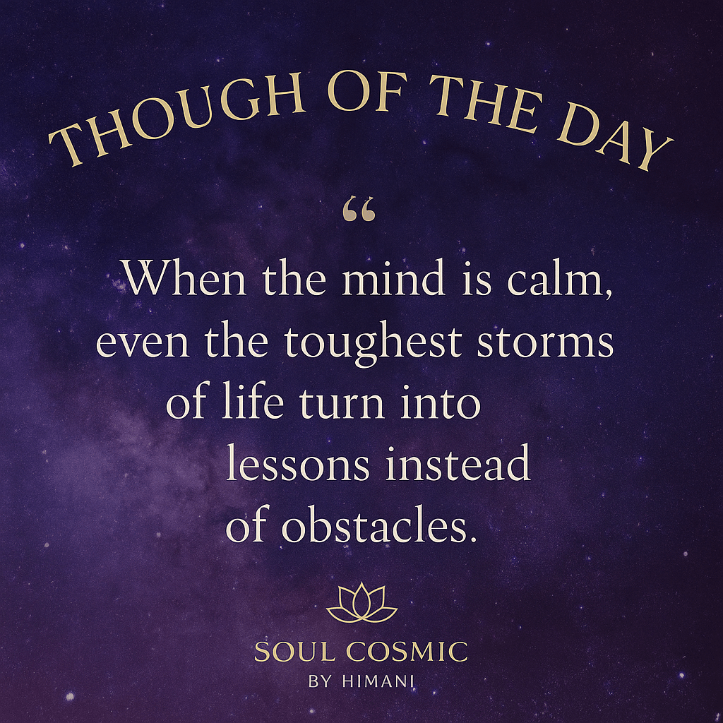 ✦ आज का विचार ✦ “जब मन शांत होता है, तो जीवन के सबसे कठिन तूफ़ान भी बाधा नहीं, बल्कि सबक बन जाते हैं।” — ✦ — ✨ शांति से लिया गया हर निर्णय आपको सही दिशा दिखाता है।