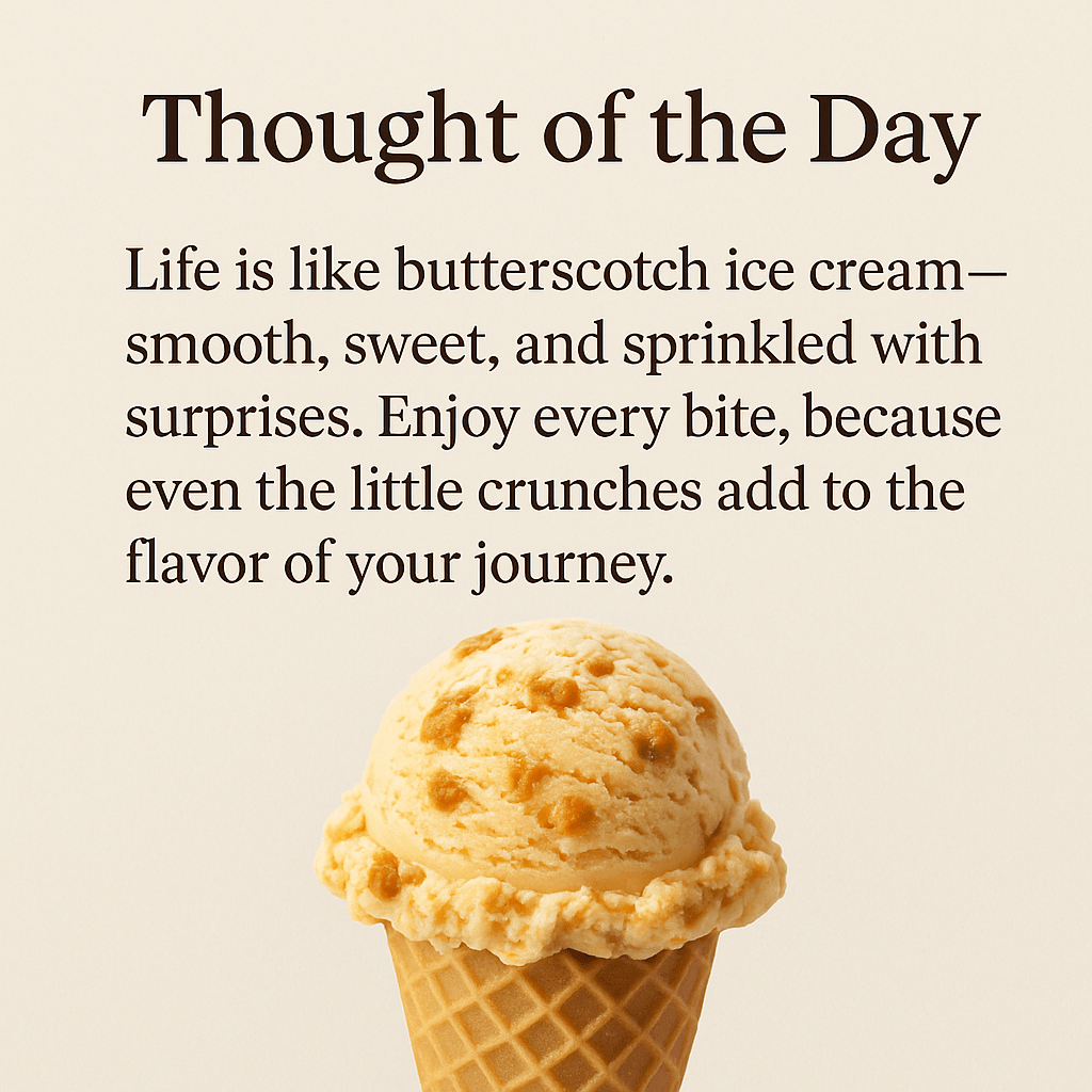 “ज़िंदगी बिलकुल बटरस्कॉच आइसक्रीम जैसी है—मुलायम, मीठी और सरप्राइज से भरी हुई। हर निवाले का मज़ा लो, क्योंकि छोटे-छोटे क्रंच भी सफ़र के स्वाद को और बढ़ा देते हैं।”
