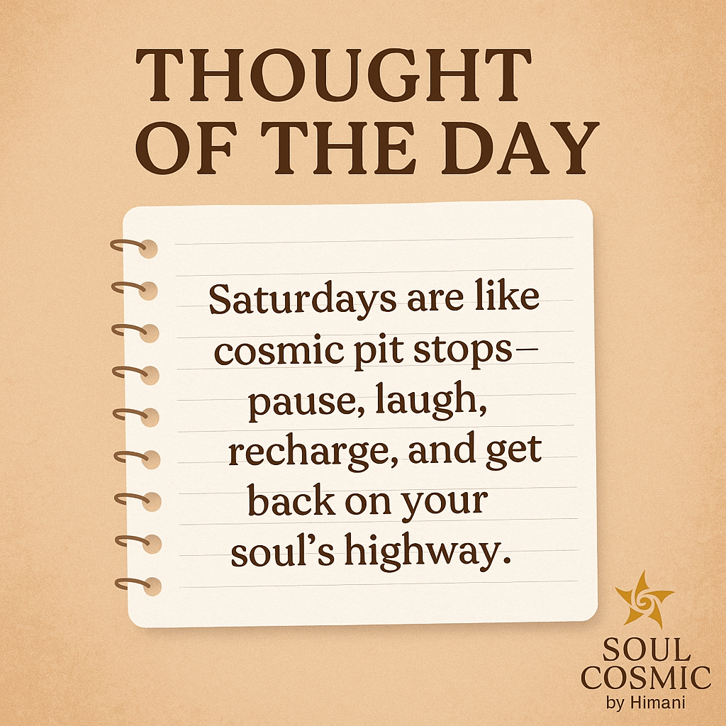 ✨ “शनिवार आत्मा के लिए कॉस्मिक पिट स्टॉप जैसा है – रुकिए, हँसिए, ऊर्जा भरिए और फिर से अपनी आत्मा की राह पर चल पड़िए।”