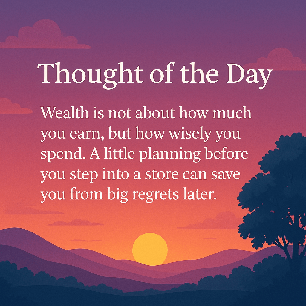 “धन यह नहीं है कि आप कितना कमाते हैं,बल्कि यह है कि आप कितना समझदारी से खर्च करते हैं।दुकान में प्रवेश करने से पहले थोड़ी सी योजनाआपको बड़े पछतावों से बचा सकती है।”