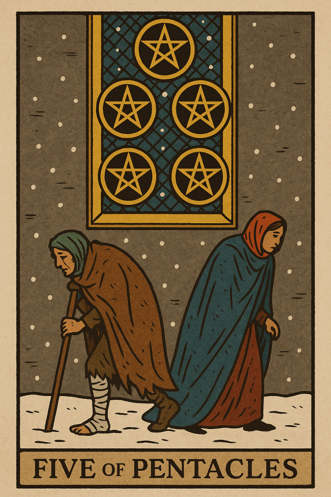 ♐ Sagittarius – Five of Pentacles