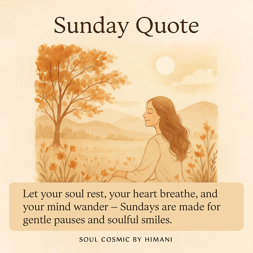 “अपने मन को विश्राम दो, दिल को सांस लेने दो और आत्मा को भटकने दो — रविवार बना है शांत ठहराव और आत्मीय मुस्कानों के लिए।”