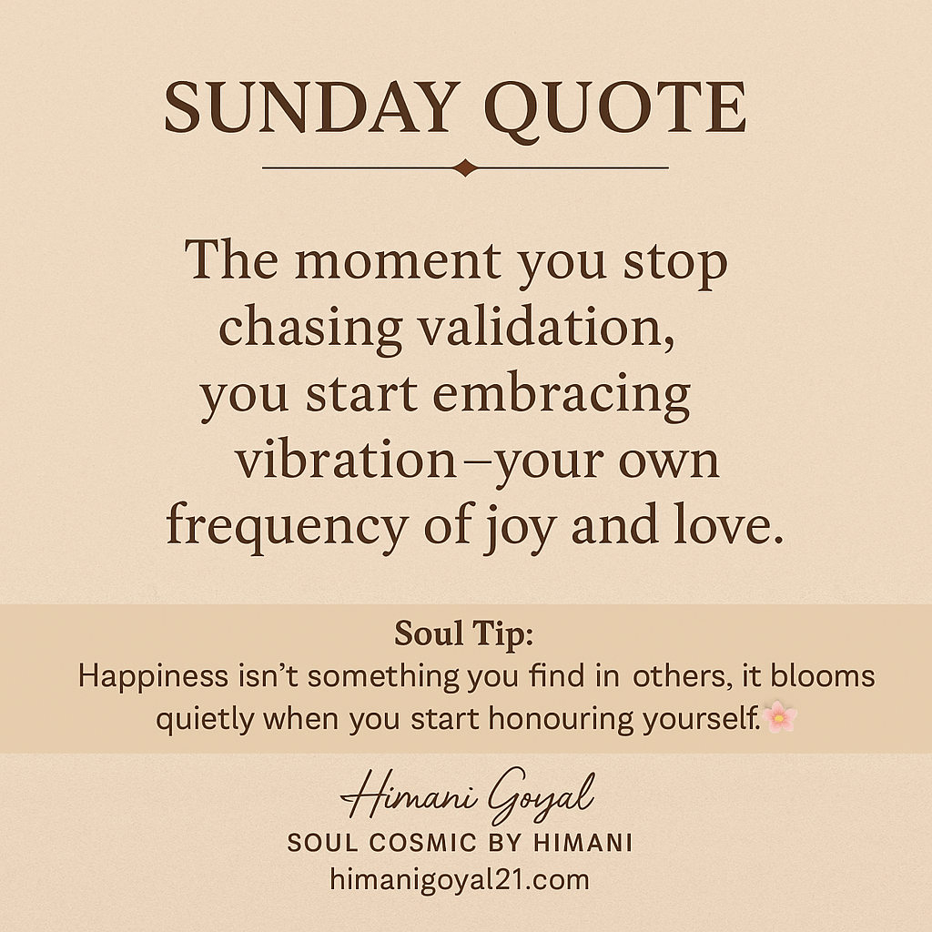 “जिस पल तुम दूसरों की स्वीकृति का पीछा करना छोड़ देते हो, उसी पल तुम अपने आनंद और प्रेम की तरंगों को अपनाना शुरू करते हो।” ✨ अर्थ: जब हम खुद को मान्यता देने लगते हैं, तब सच्ची खुशी और प्रेम भीतर से खिलने लगता है।