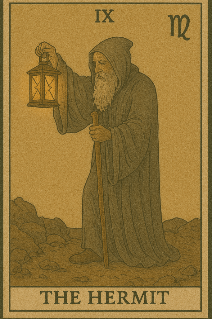 This week calls for introspection. The Hermit guides you to take a step back and look within before taking action. Avoid external noise — your answers lie within.