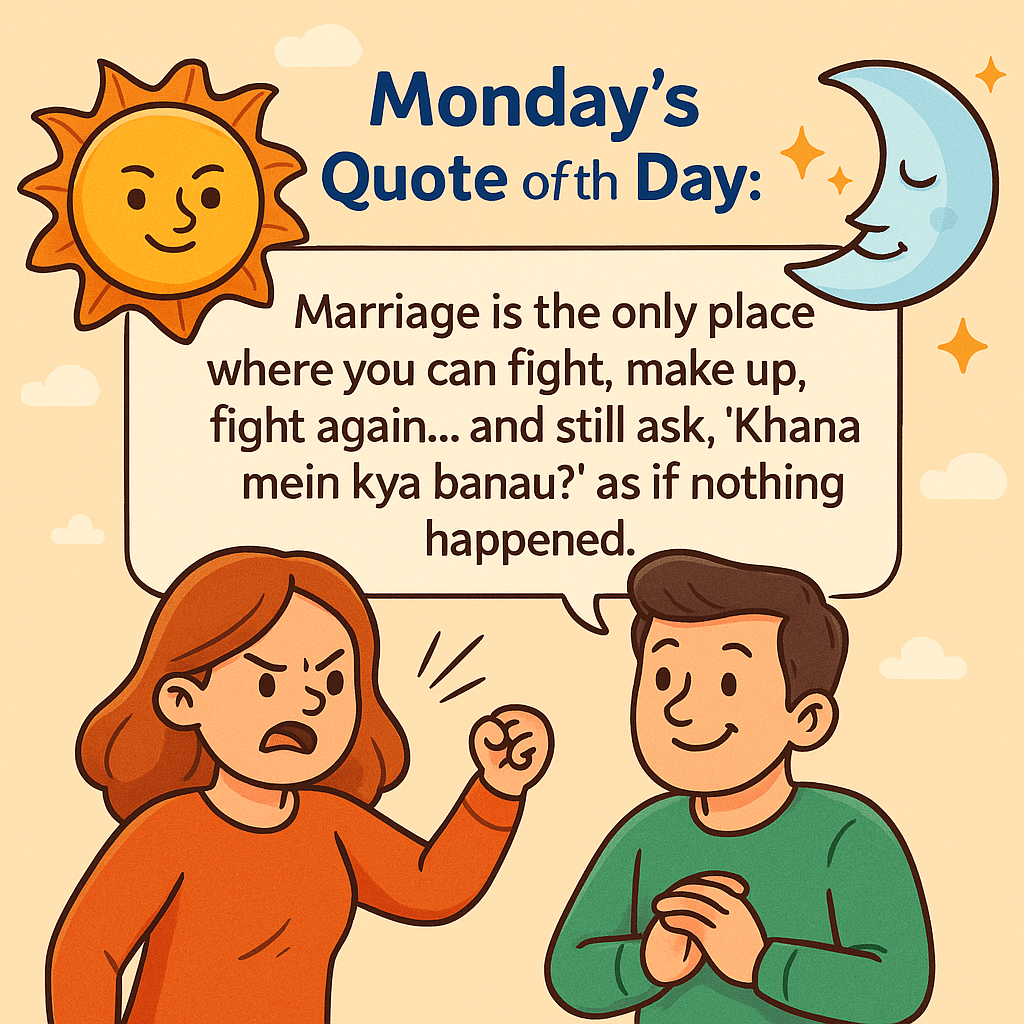 “शादी ही एक ऐसी जगह है जहाँ आप लड़ सकते हैं, मान सकते हैं, फिर से लड़ सकते हैं… और फिर भी ऐसे पूछ लेते हैं, ‘खाना में क्या बनाऊँ?’ जैसे कुछ हुआ ही नहीं।”
