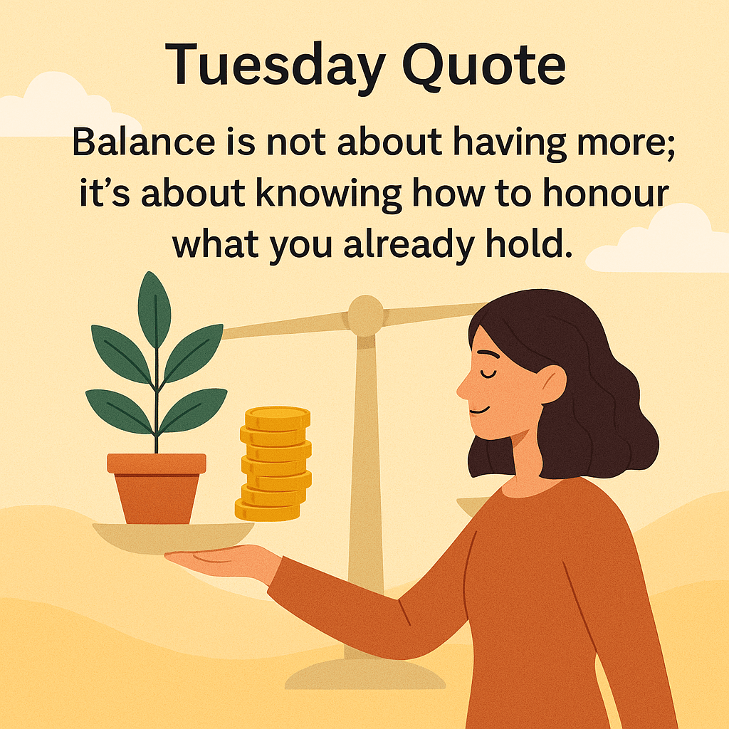 “संतुलन ज़्यादा पाने में नहीं है;यह इस बात में है कि जो कुछ आपके पास पहले से है,उसे सम्मानपूर्वक कैसे संभालना है।”