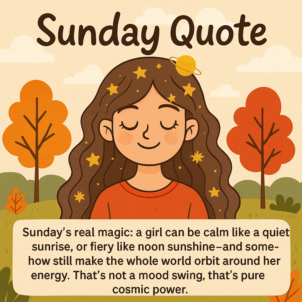 “रविवार का असली जादू: एक लड़की शांत सूर्योदय जैसी नरम भी हो सकती है,और दोपहर की तेज धूप जैसी आग भी—और फिर भी पूरी दुनिया को अपनी ऊर्जा के इर्द-गिर्द घुमा लेती है।ये मूड स्विंग नहीं, ये उसकी सच्ची कॉस्मिक ताकत है।”