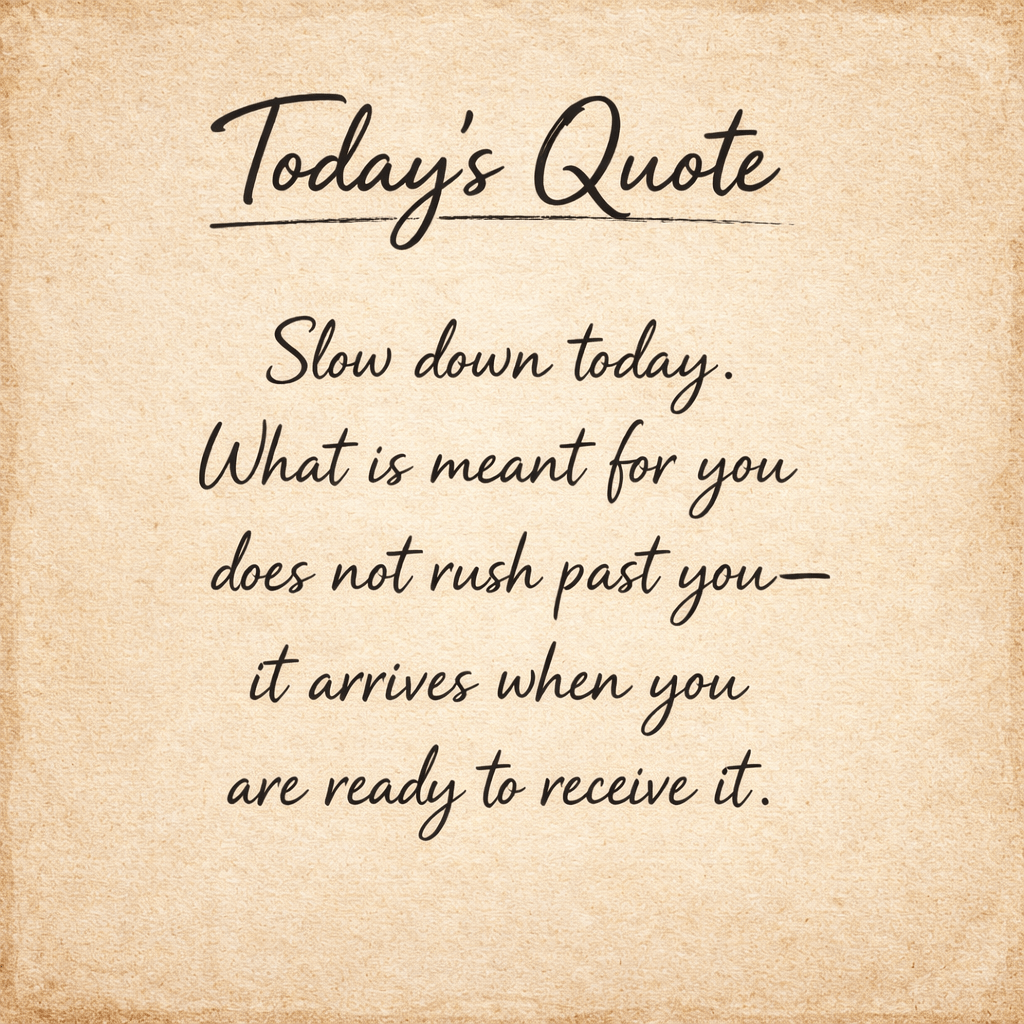 “आज थोड़ा धीमे चलिए।जो आपके लिए बना है, वह आपसे छूटता नहीं—वह तब आता है, जब आप उसे ग्रहण करने के लिए तैयार होते हैं।”
