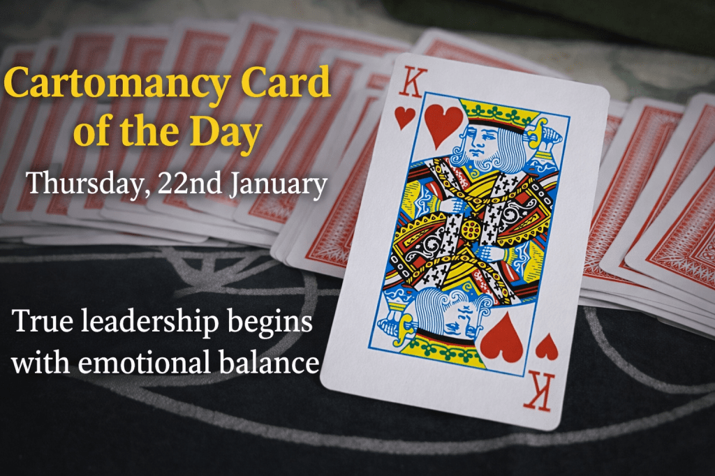 Today’s Cartomancy card is the King of Hearts, a powerful symbol of emotional wisdom, maturity, and compassionate leadership.