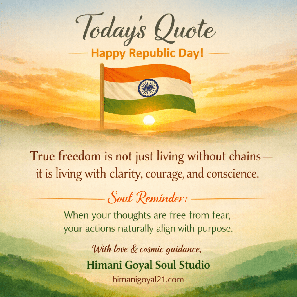 “सच्ची स्वतंत्रता केवल जंजीरों से मुक्त होना नहीं है—सच्ची स्वतंत्रता है स्पष्ट सोच, साहस और विवेक के साथ जीवन जीना।” Soul Reminder (हिंदी में):जब आपके विचार भय से मुक्त होते हैं,तब आपके कर्म अपने-आप उद्देश्य के साथ जुड़ जाते हैं।