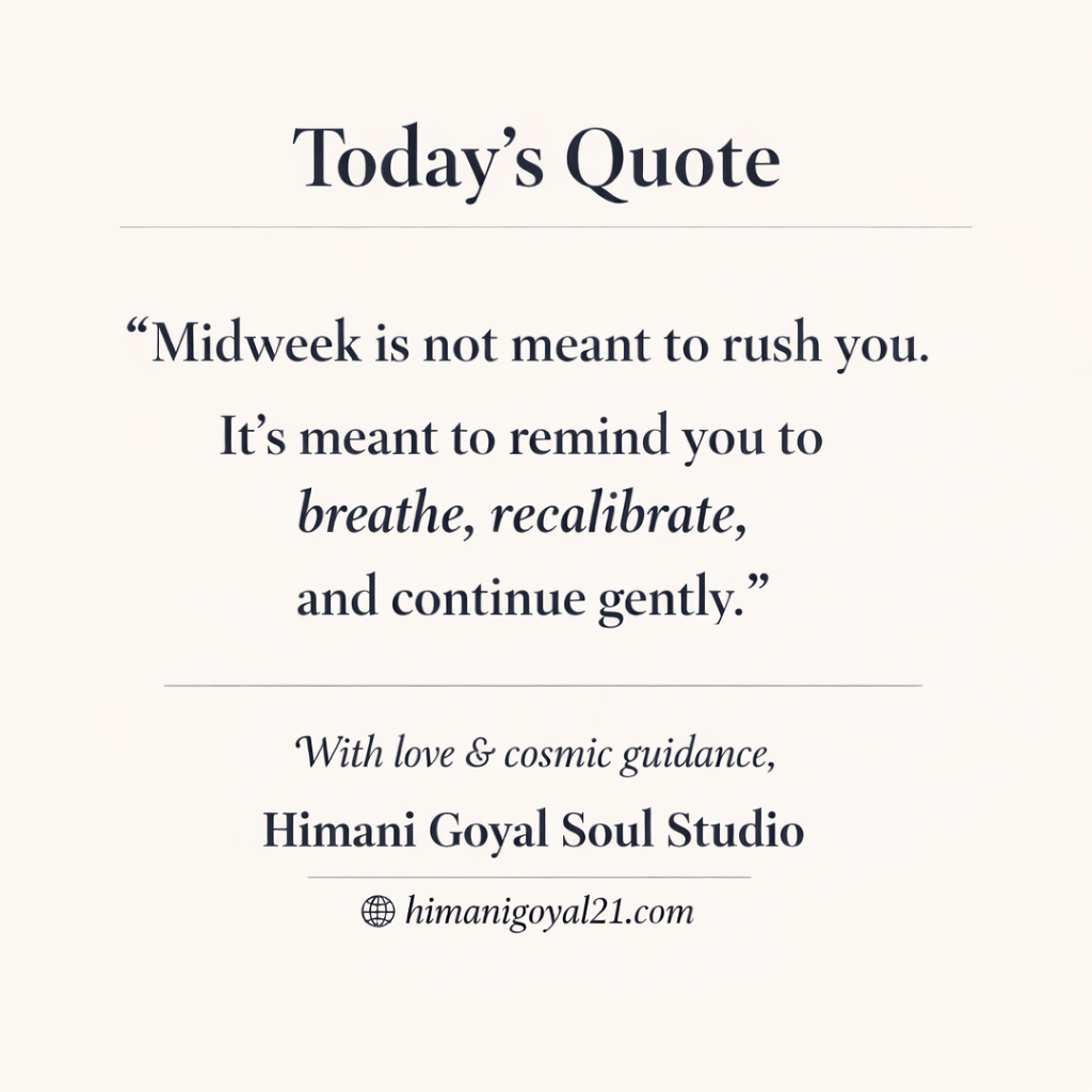 “सप्ताह का मध्य आपको जल्दबाज़ी करने के लिए नहीं होता।यह आपको याद दिलाने के लिए होता है—साँस लें, खुद को फिर से संतुलित करें,और धीरे-धीरे आगे बढ़ते रहें।”