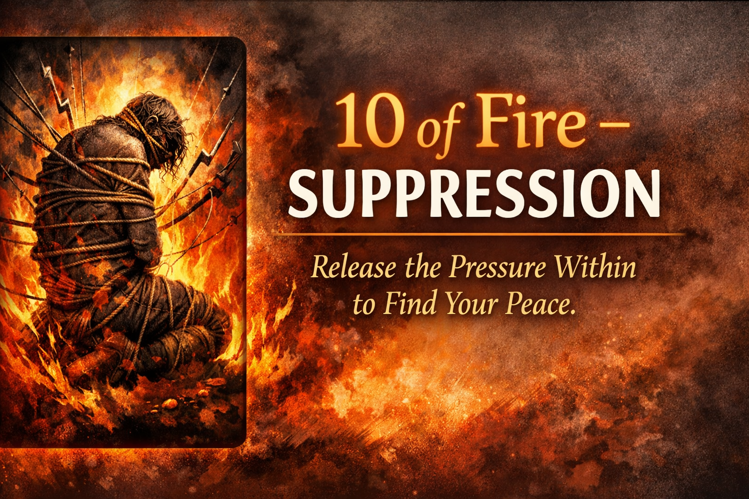 Today’s card, 10 of Fire – Suppression, gently reminds us that holding too much inside eventually creates pressure. This card appears when emotions, desires, or truths have been pushed down for too long to keep peace, meet expectations, or avoid conflict.