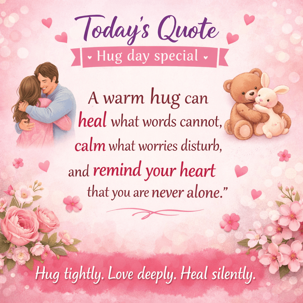 “एक प्यारी सी झप्पी वो कर सकती है,जो शब्द नहीं कर पाते—दिल को सुकून देती है,चिंताओं को शांत करती है,और यह याद दिलाती है कि आप कभी अकेले नहीं हैं।” 💖