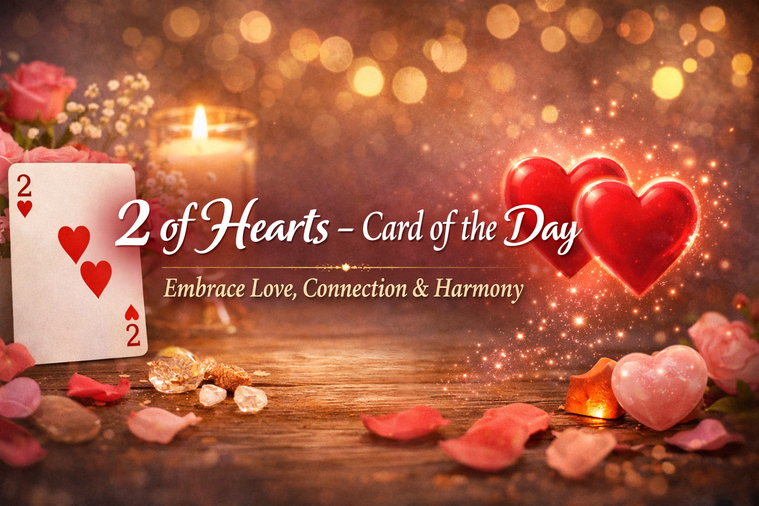 The 2 of Hearts is a beautiful sign of emotional connection, mutual feelings, and heartfelt bonds. It’s a reminder that love—whether romantic, friendship, or self-love—is flowing toward you.