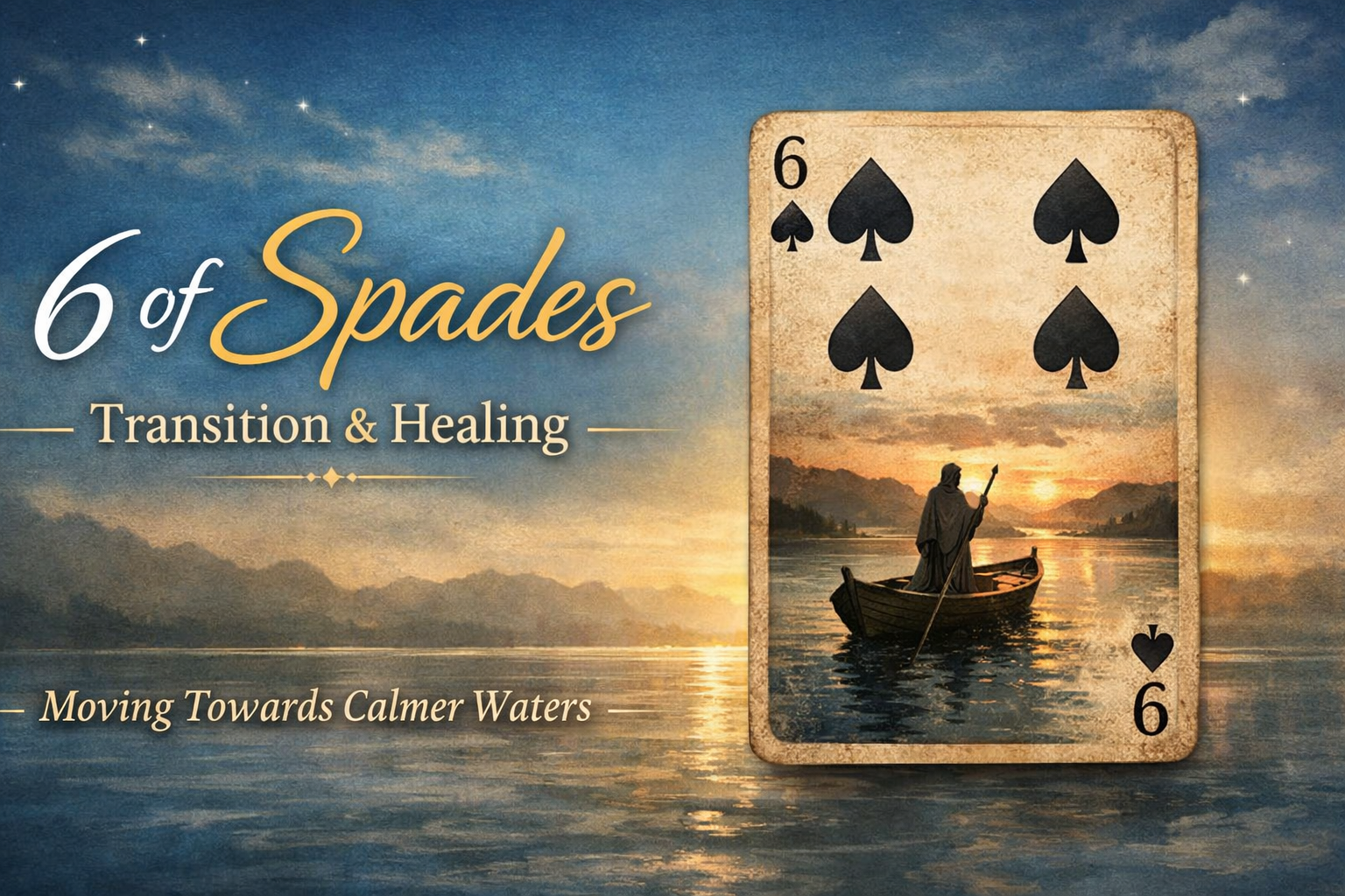 Today’s energy with the 6 of Spades brings a gentle message of transition and emotional recovery. You may find yourself slowly moving away from stress, confusion, or a situation that no longer feels right.